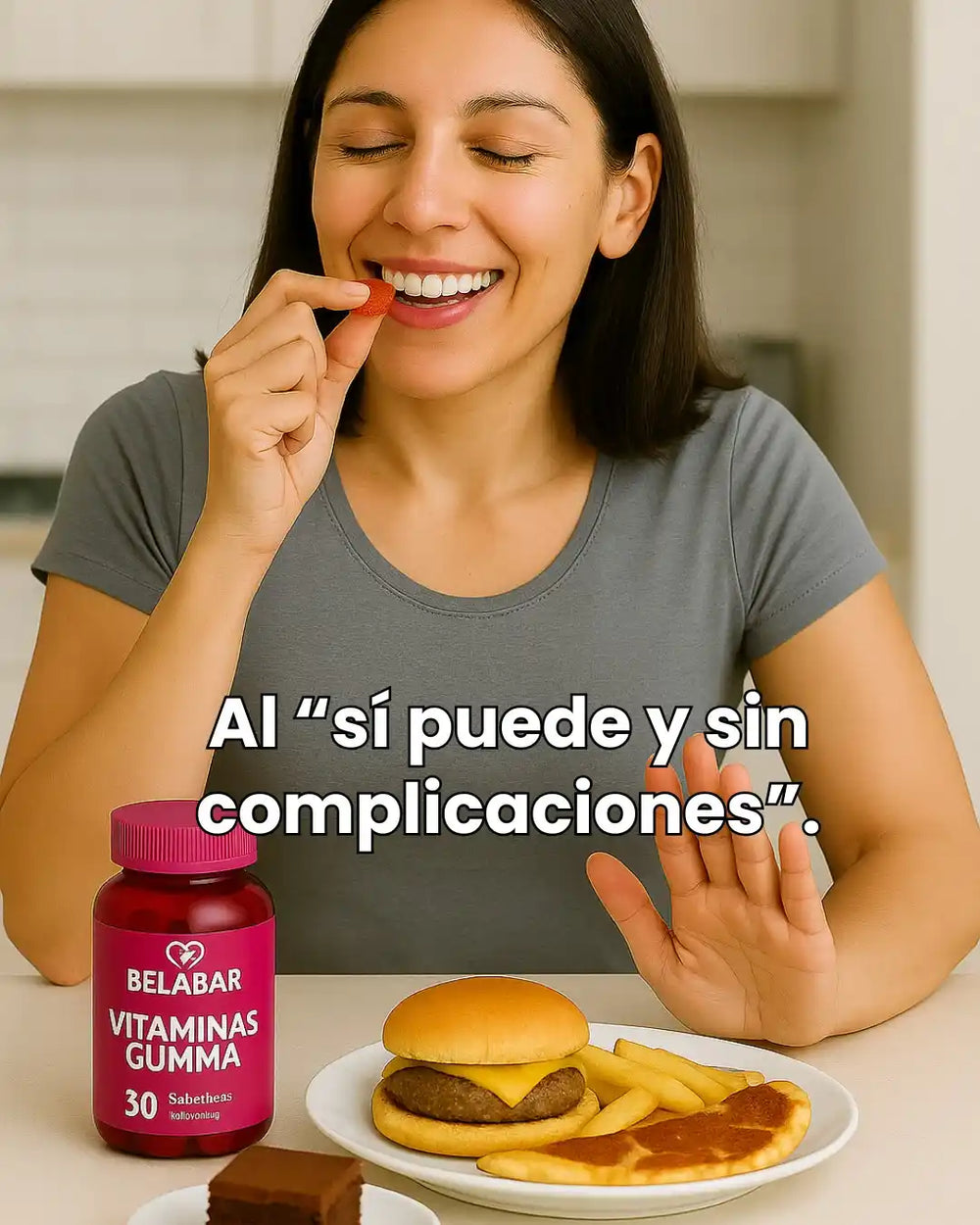 Sí, como apoyo. Tomar 2 gomitas + agua antes o justo después de la comida crea una pausa que ayuda a elegir porciones más reales y reduce el impulso por panito/gaseosa en la tarde. No es magia: es un recordatorio sabroso que facilita el hábito.