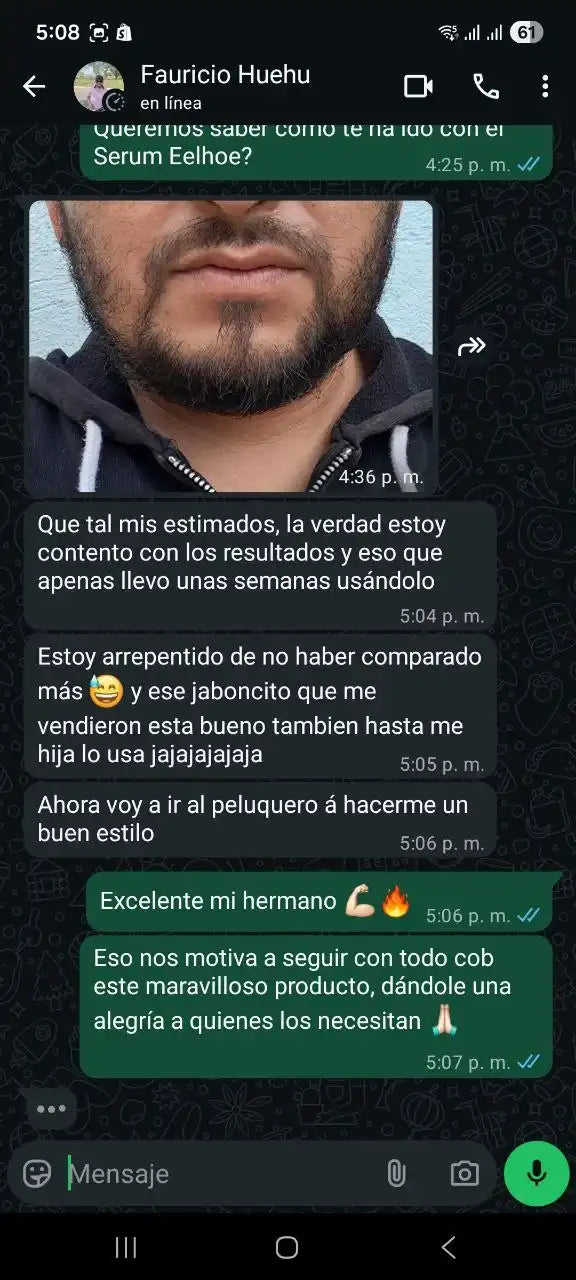 La mayoría de hombres que lo usan empiezan sin nada o con huecos marcados. EELHOE despierta la circulación y los folículos en zonas donde antes no crecían vellitos.