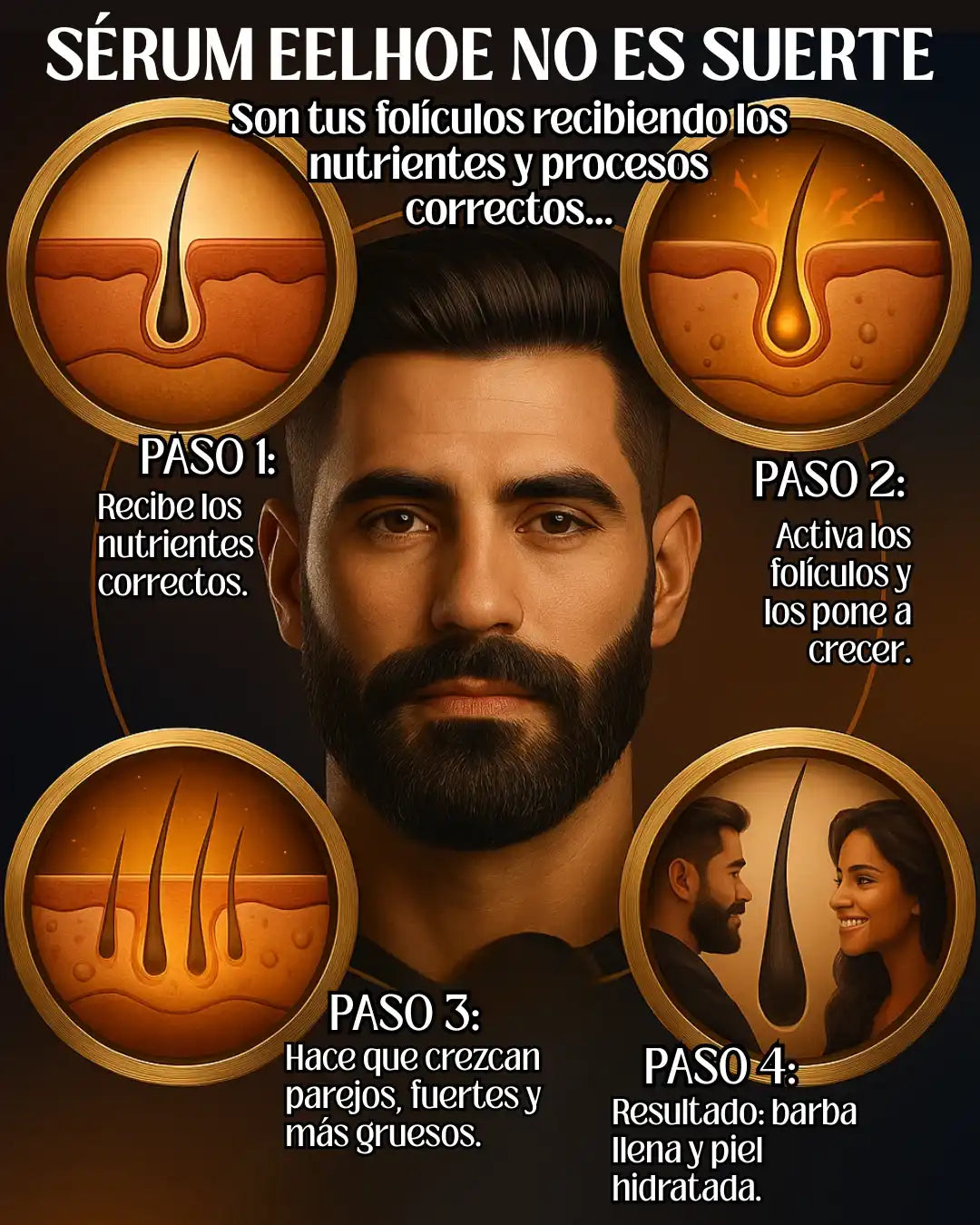 La mayoría de hombres que lo usan empiezan sin nada o con huecos marcados. EELHOE despierta la circulación y los folículos en zonas donde antes no crecían vellitos.
